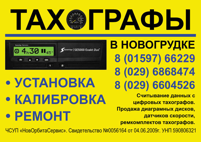 С 2013 года ЧСУП "НовОрбитаСервис" оказывает услуги по установке, активированию и ремонту тахографов.